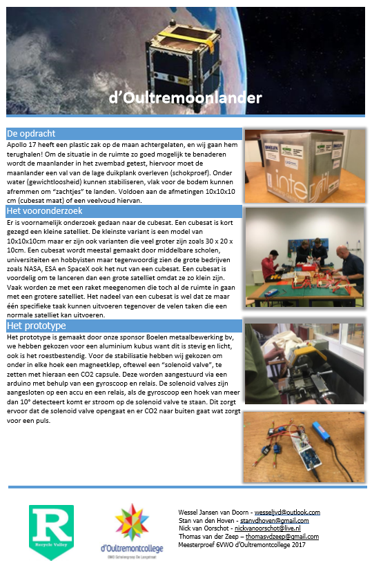 Bij de meesterproeffinale van donderdag 19 april 2018 worden de resultaten van de onderstaande projecten gepresenteerd door de leerlingen.